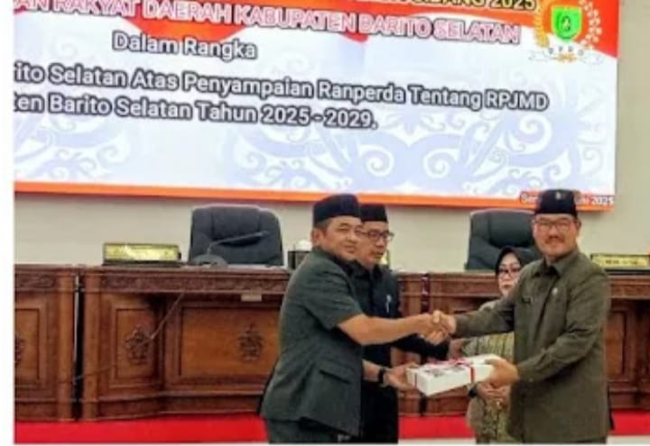 Bupati Barsel Edy Raya Samsuri diwakili oleh wakil Bupati Khristianto Yudha menyampaikan pidatonya sekaligus memberikan penjelasan dan keterangan terkait dengan substansi pokok materi Ranperda tentang RPJMD Kabupaten Barsel Tahun 2025-2029, pada Rapat Paripurna Ke-20 Masa Persidangan III DPRD Kabupaten Barsel Tahun 2025.