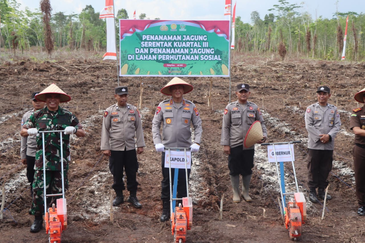 GEMASUARA, RAKUMPIT – Polda Kalimantan Tengah bersama Polresta Palangka Raya melaksanakan Penanaman Jagung Serentak Kuartal III di lahan Perhutanan Sosial Jl. Tumbang Telaken, Kel. Pager, Kec. Rakumpit, Kota Palangka Raya, Rabu (9/7/2025).