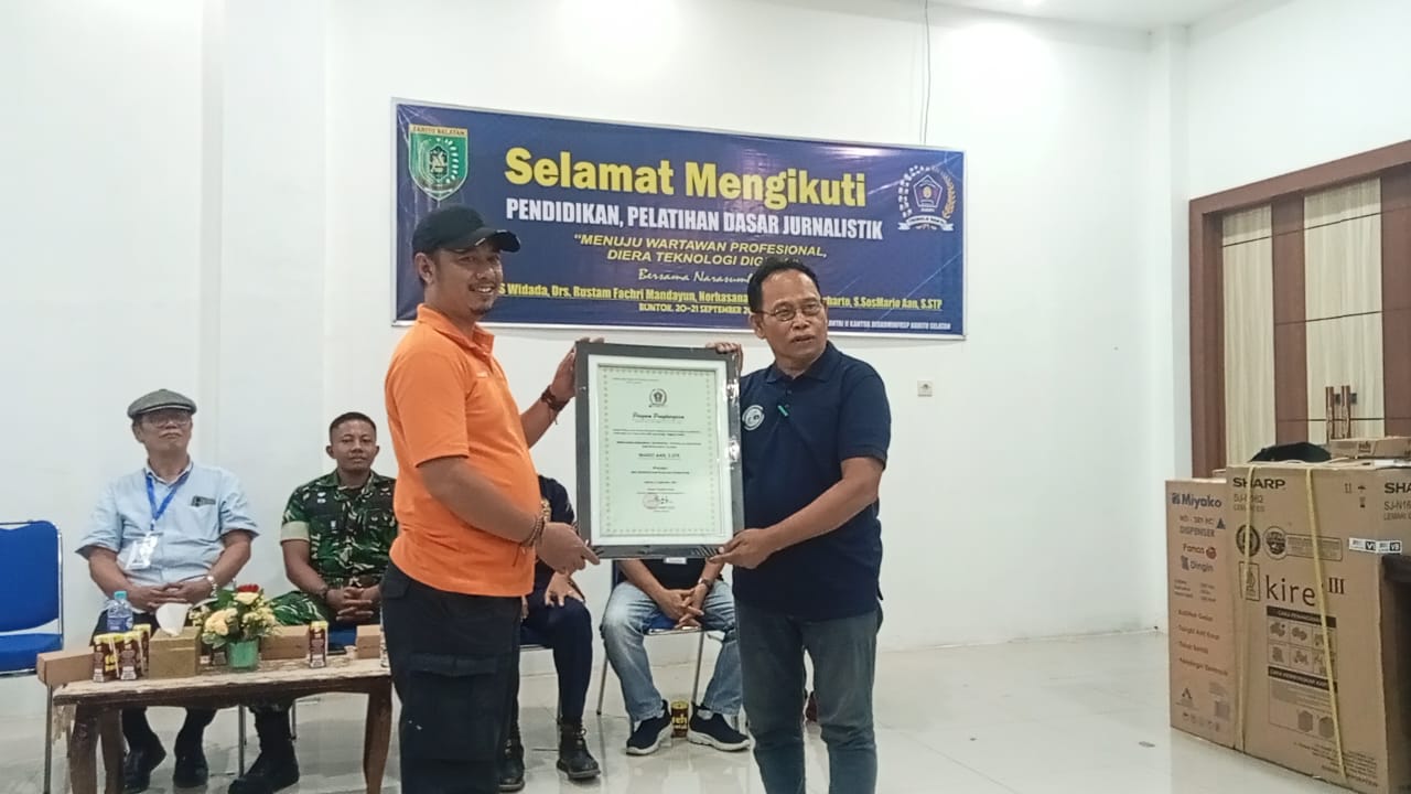 GEMASUARAMEDIA.COM, BUNTOK – Ketua DPD Asosiasi Wartawan Profesional Indonesia (AWPI) Kalimantan Tengah, Hadriansyah, secara resmi menyerahkan penghargaan kepada Mario Aan, selaku mitra DiskominfoSP Barito Selatan, atas kontribusinya dalam membangun sinergi dengan insan pers di daerah. 21-9-2025.